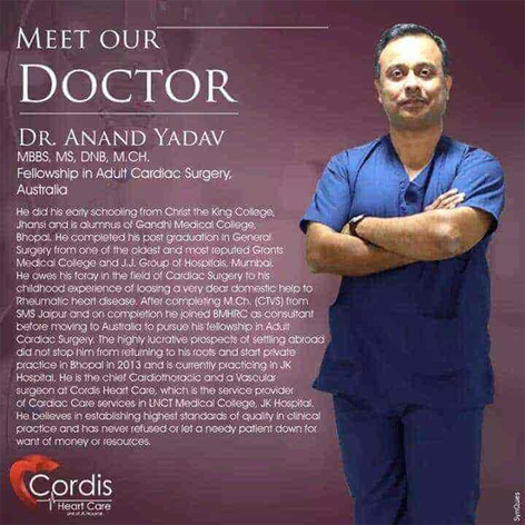 DR. ANAND YADAV MBBS, MS, DNB, M.CH. Fellowship in Adult Cardiac Surgery. Australia